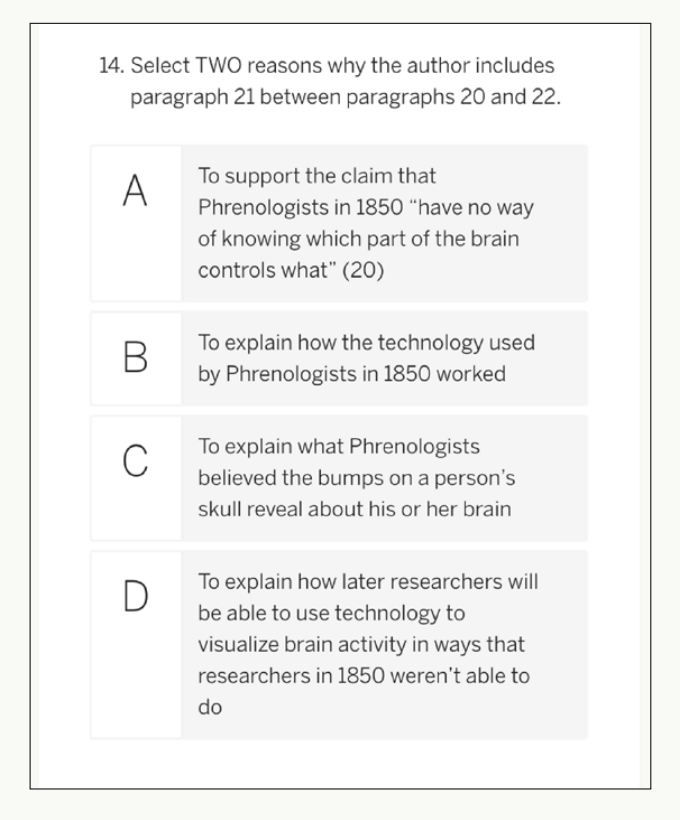 The selected response section of the assessment includes 20 items. Unlike in Solo
