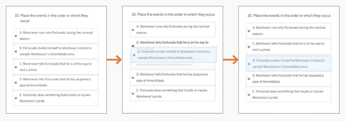 | Order a list questions These questions present a list of statements that students can drag and drop to reorder. ![]() |